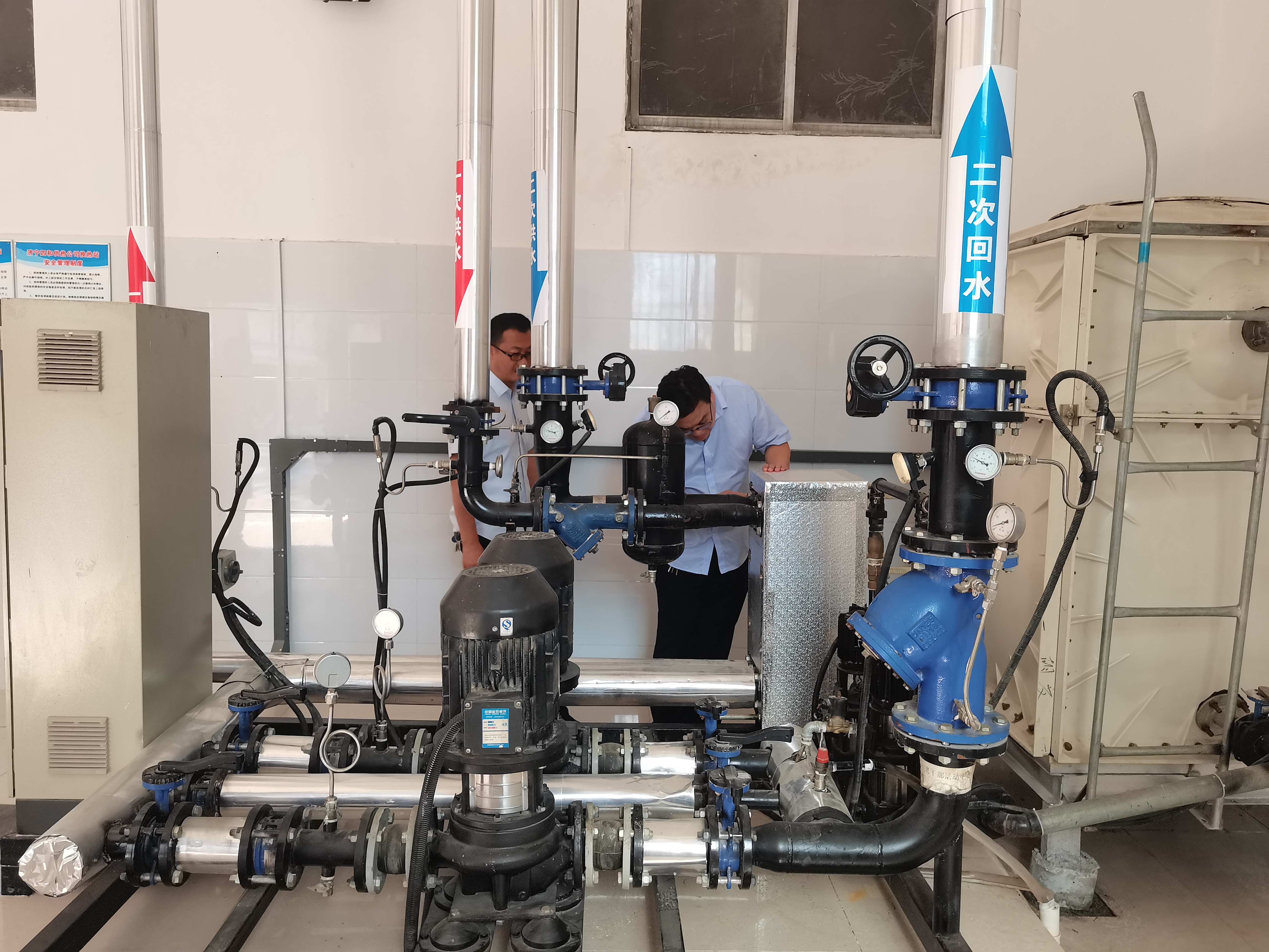 在聽相關工作完成情況匯報后,林存昌一行先后來到了市委二宿舍、建筑設計院、老干部活動中心、關帝廟、玉米倉、鼓手營、吉祥小區(qū)、北門小區(qū)等17座換熱站,與相關工作負責人深入交流,了解工作狀況,認真檢查換熱站設備保養(yǎng)情況,詳細核對工作完成情況,并對四和公司針對板式換熱器的保溫方法既節(jié)約了成本降低了熱損耗,又可以提升用戶室內溫度的創(chuàng)新做法提出表揚。林存昌充分肯定了四和公司在“冬病夏治”工作中的亮點做法和創(chuàng)新思路,同時也提出了寶貴的意見和建議。