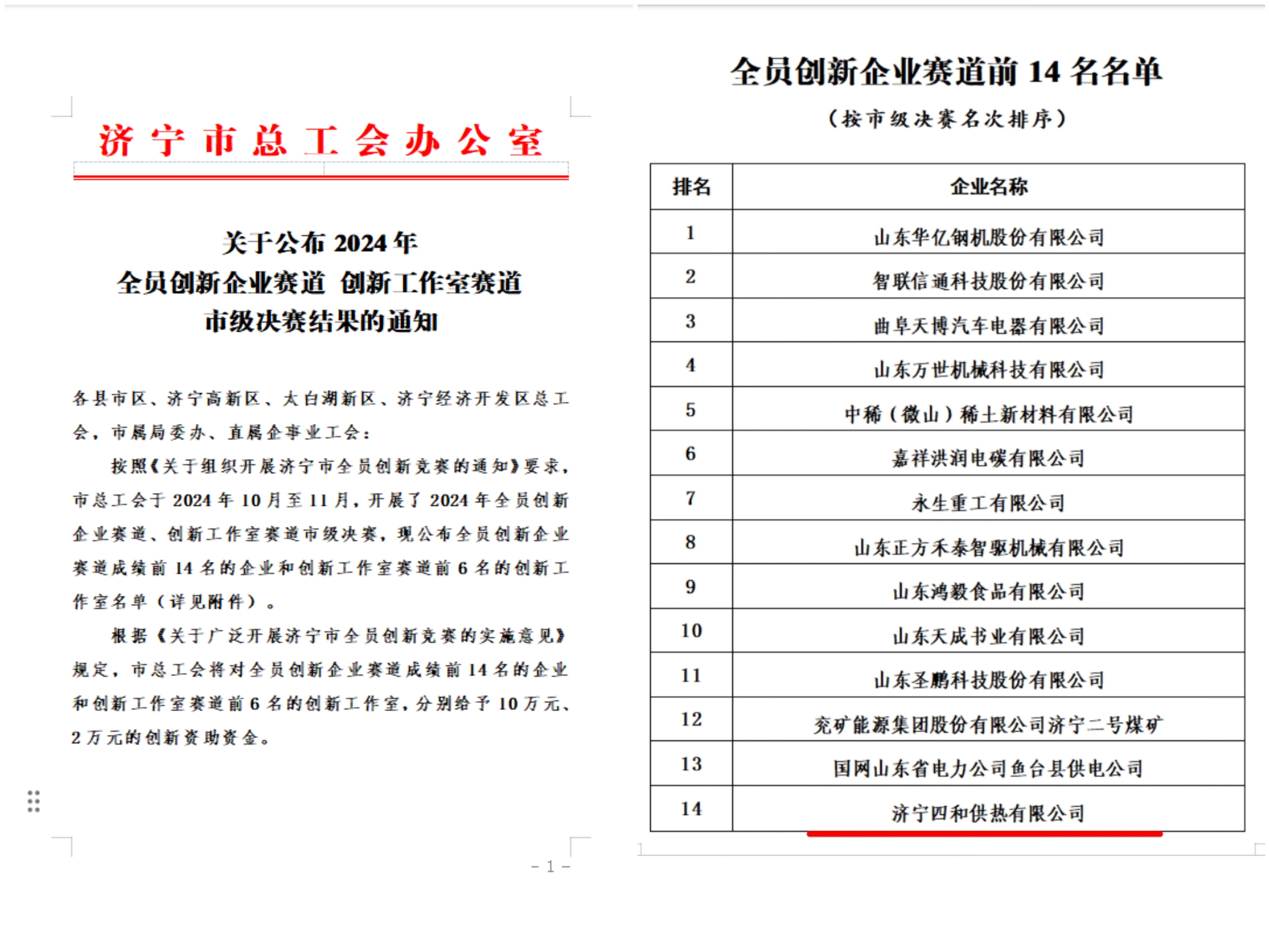濟寧四和供熱有限公司榮獲2024年全員創(chuàng)新企業(yè)